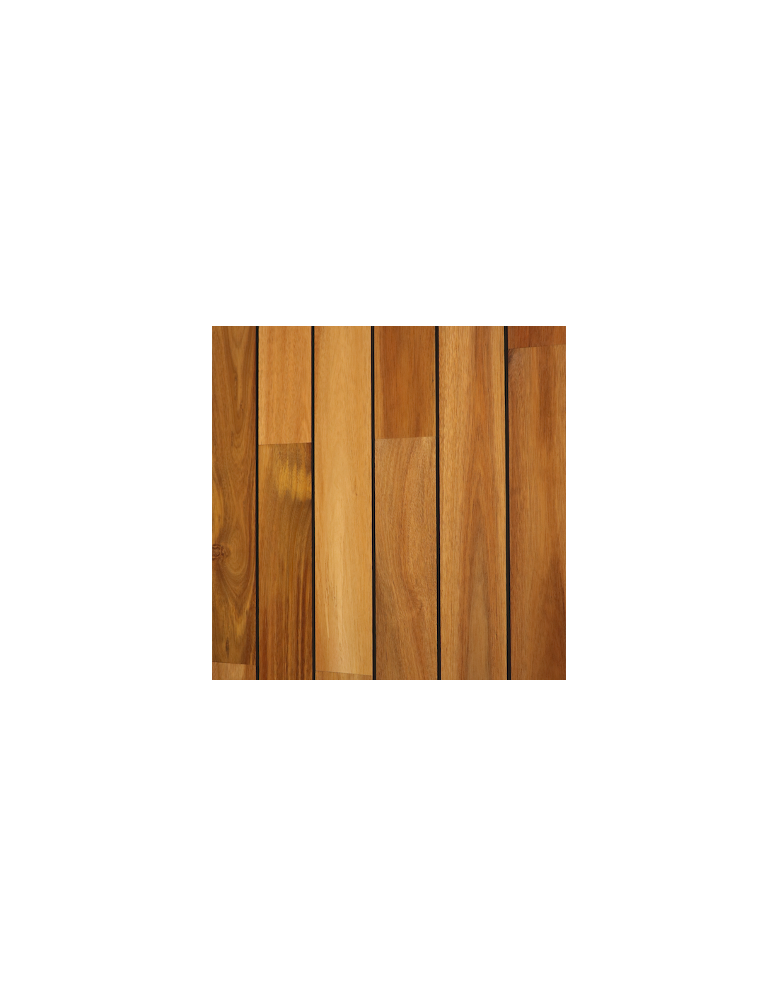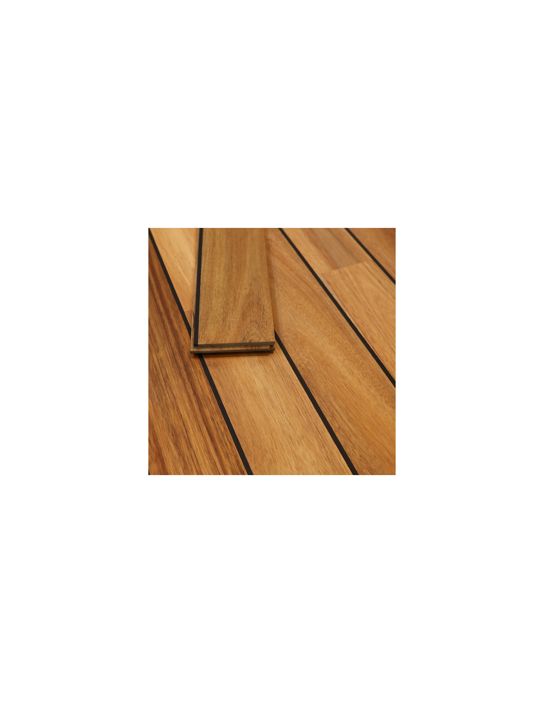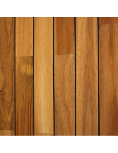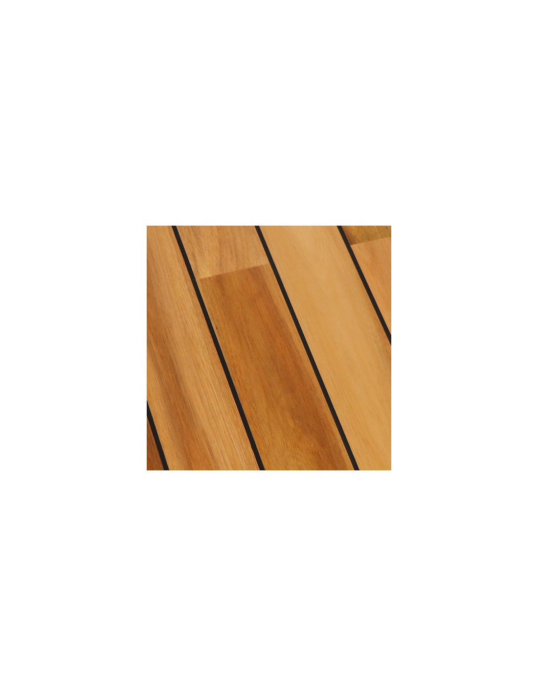 Le parquet Acacia pont de bateau massif est de choix premier et a une finition huilé en usine. Les lames d'acacia pont de bateau ont une épaisseur 15 mm et sont larges de 90 mm. Un joint mastic polyuréthane pont de bateau (joint noir) est intégré pour une étanchéité optimale. L'Acacia est un bois extrêmement dur et durable, imputrescible de classe 4, à la belle couleur blonde. Cette essence est adaptée aux pièces humides comme les salles de bain.